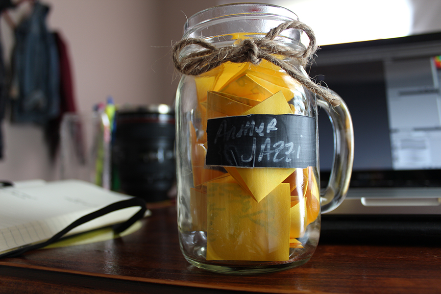 Because everyday isn't easy for the over-thinkers, and geniuses in the world. A good friend of mine, and fellow freelancer gave me the advice to fill a jar with quotes and affirmations. So in those moments of doubt, I can put my hand in the jar and get that boost of much need reassurance and motivation. At first I was a little apprehensive, but over time I saw that this could be put to good use instead of crawling into a hole of despair. There are even time, that I find the most relief through adding to the jar.
